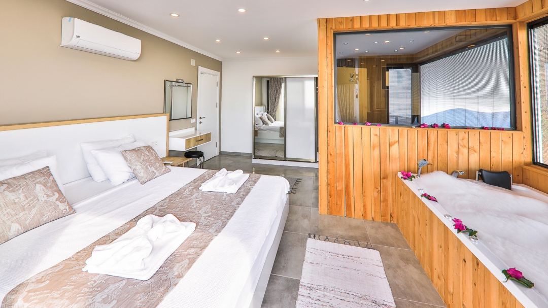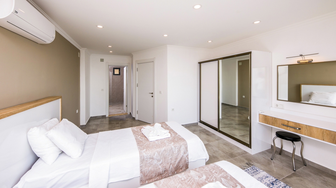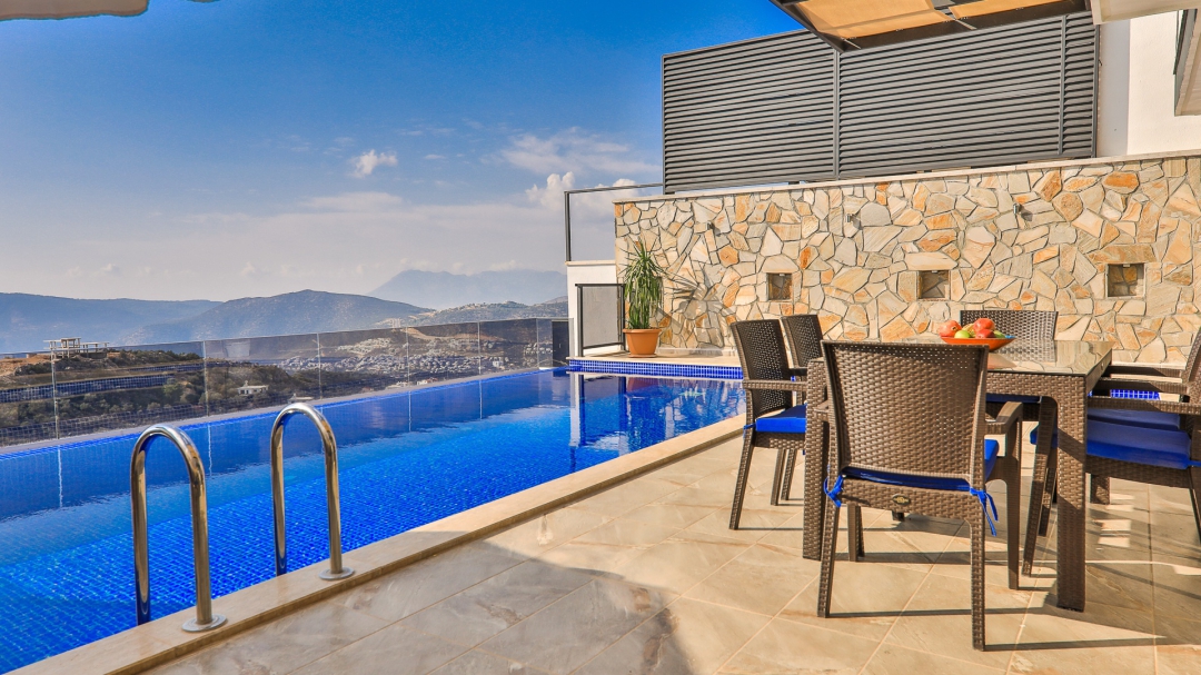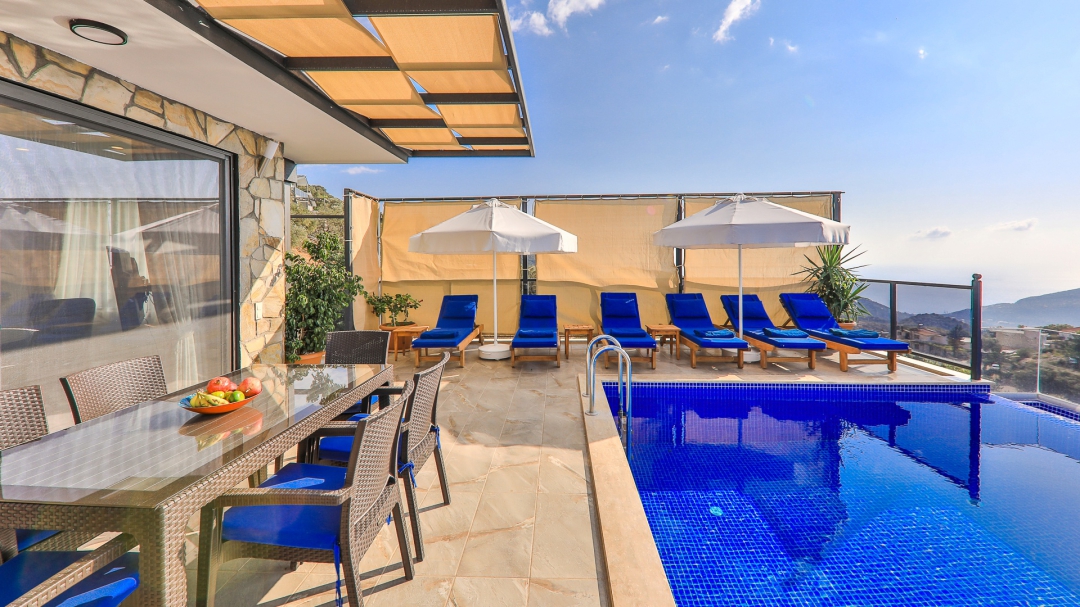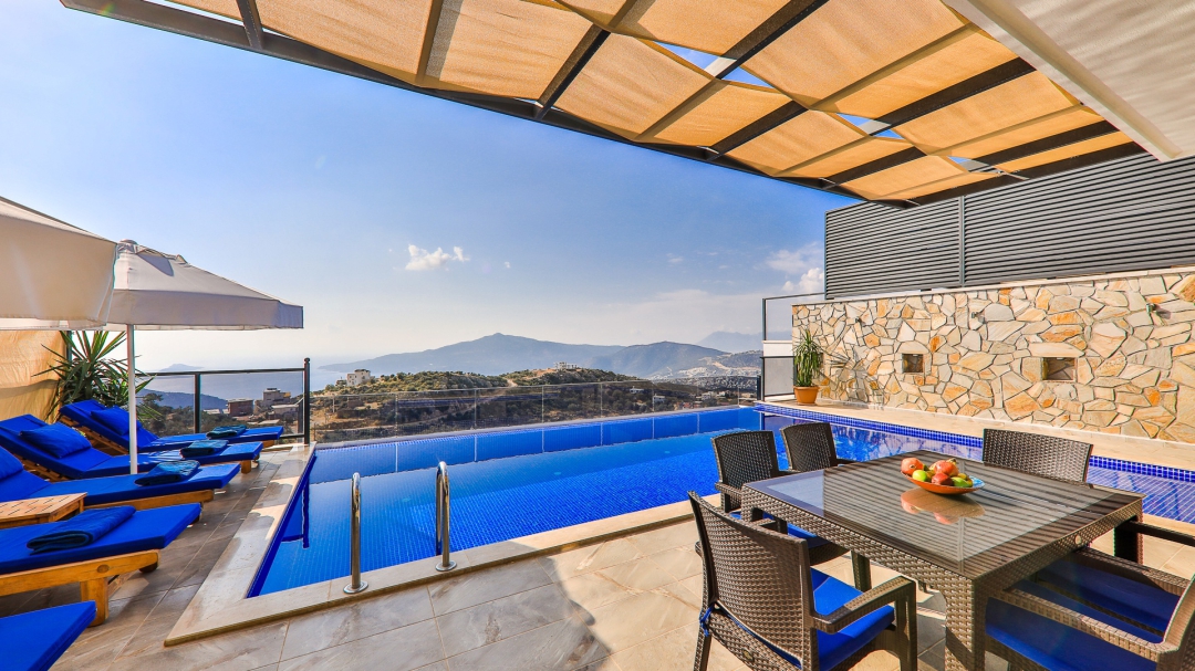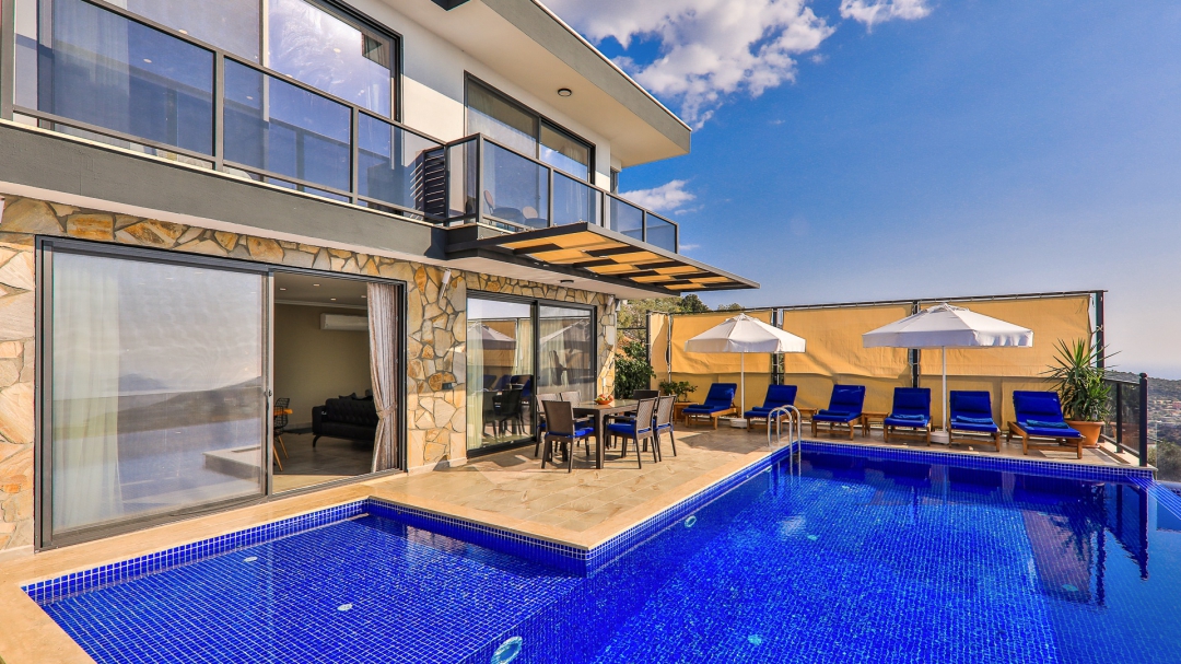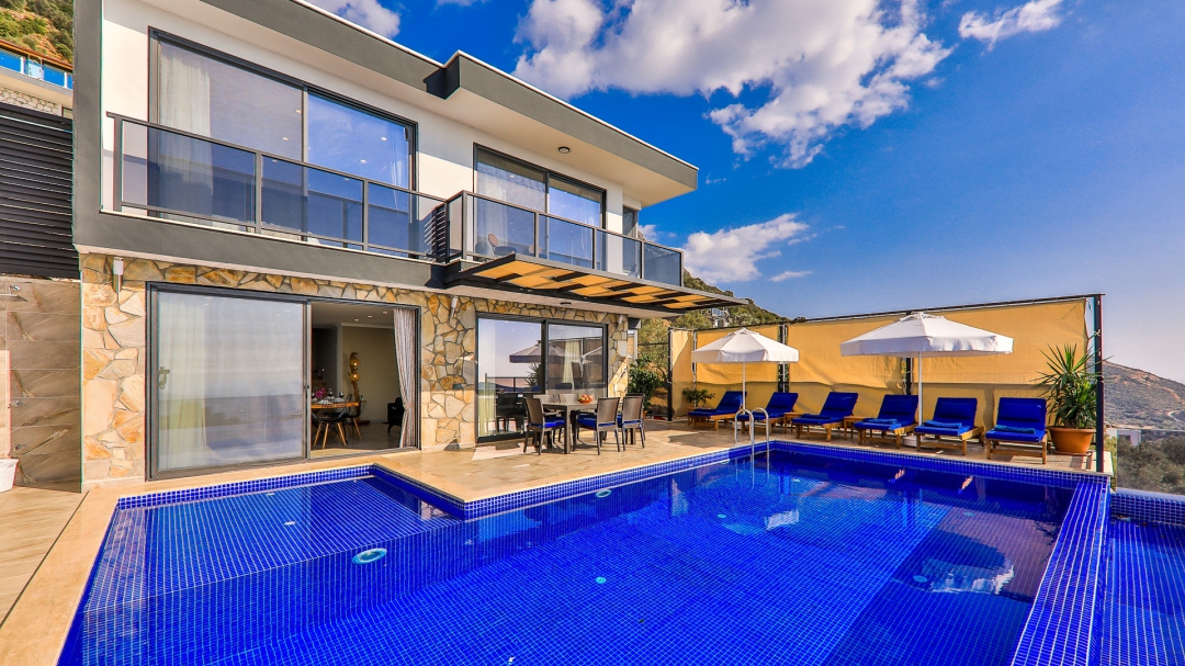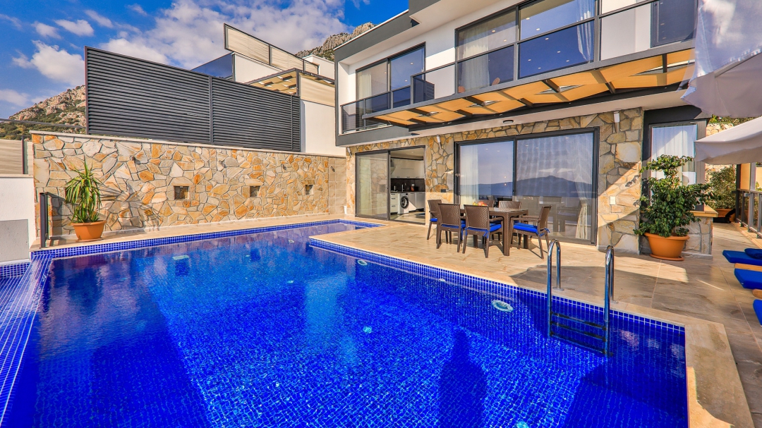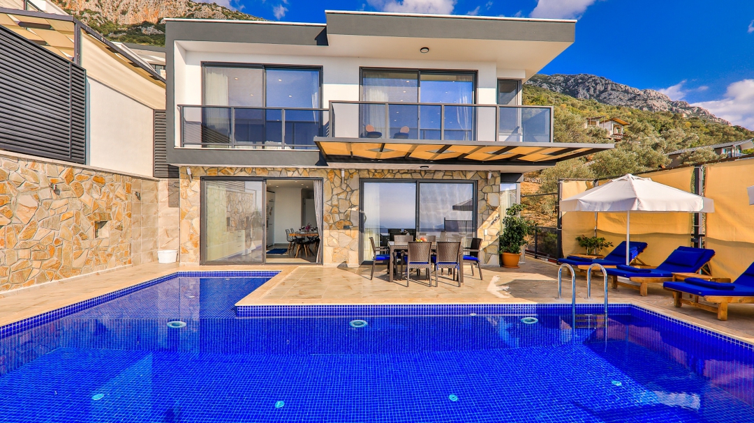 Kalkan'ın Kördere bölgesinde yer alan 3 yatak odalı villa, Kalkan merkeze 5-10 dakikalık sürüş mesafesindedir. Villada çocuk oyun grubu, kapalı havuz, jakuzi gibi donanımlar yer alır. Tüm odaları en suittir.