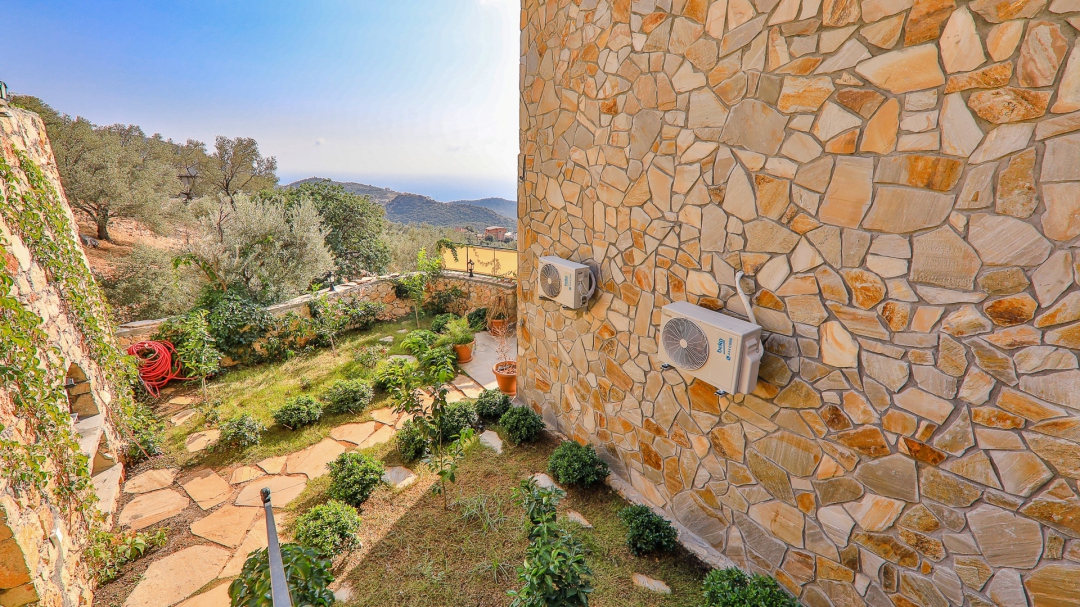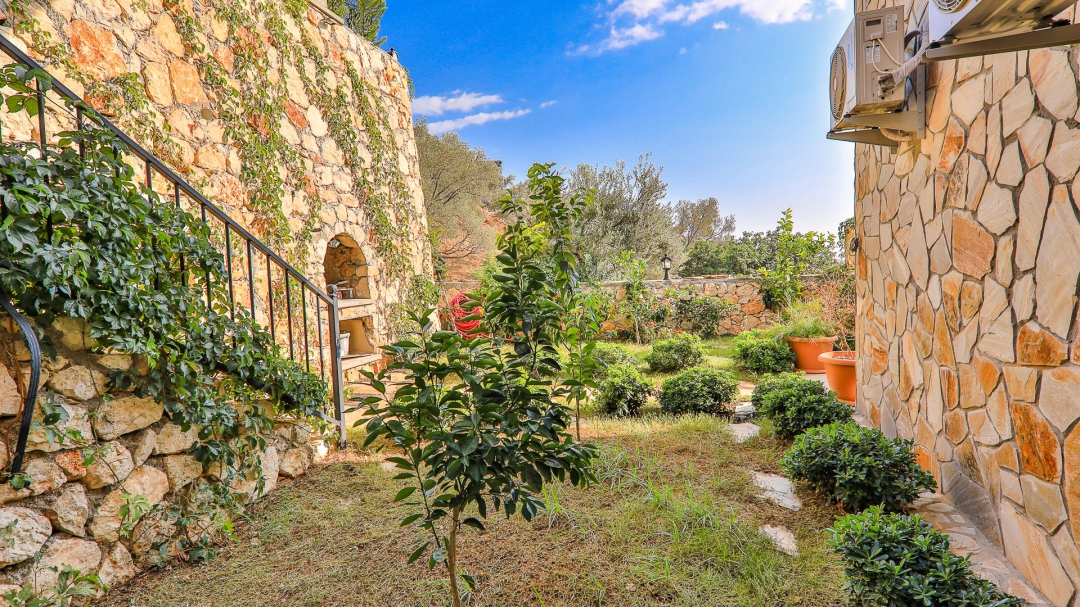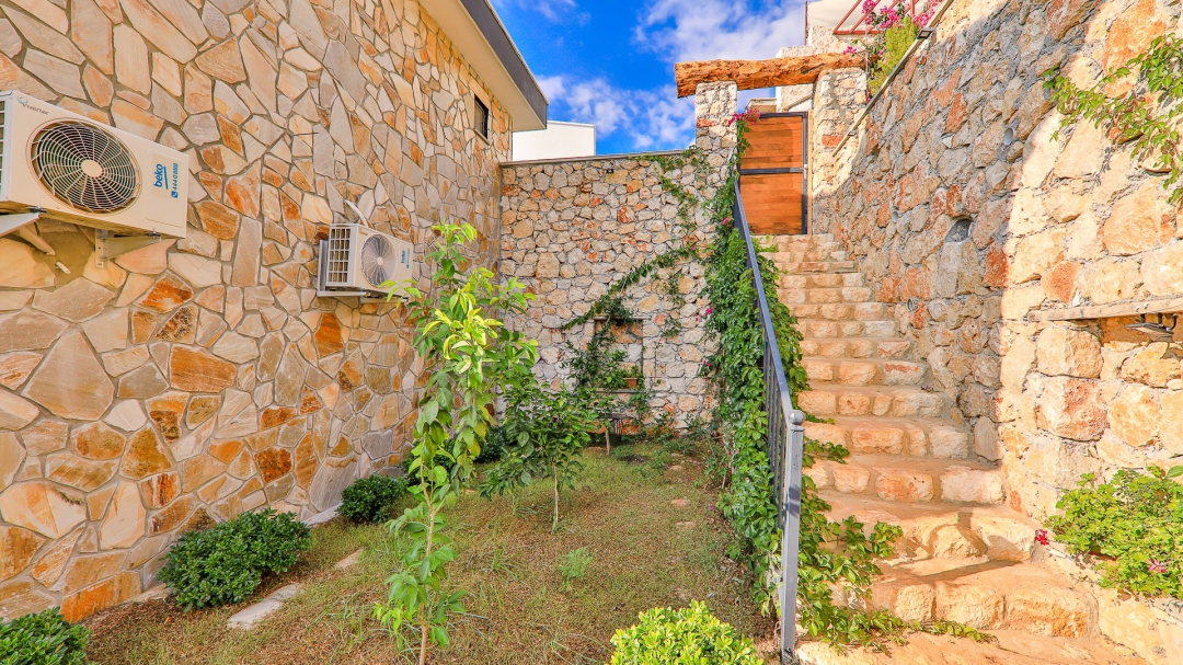 Villa, yamaç bir bölgede olduğu için villaya ulaşım yolunun sonunda 15 metrelik dik bir yokuş vardır.