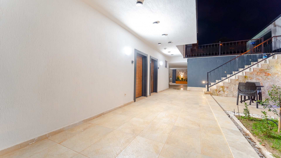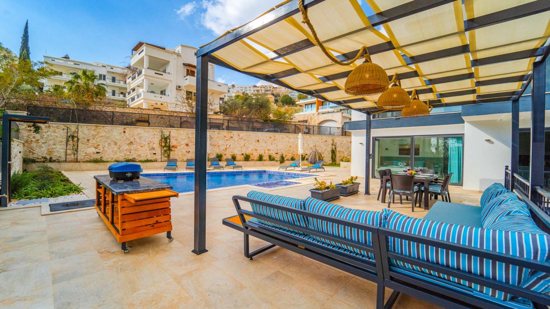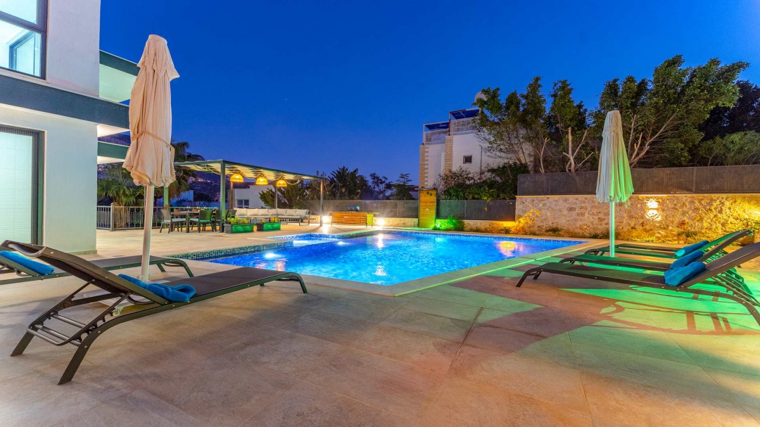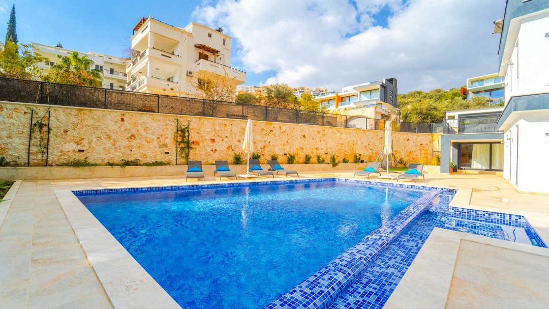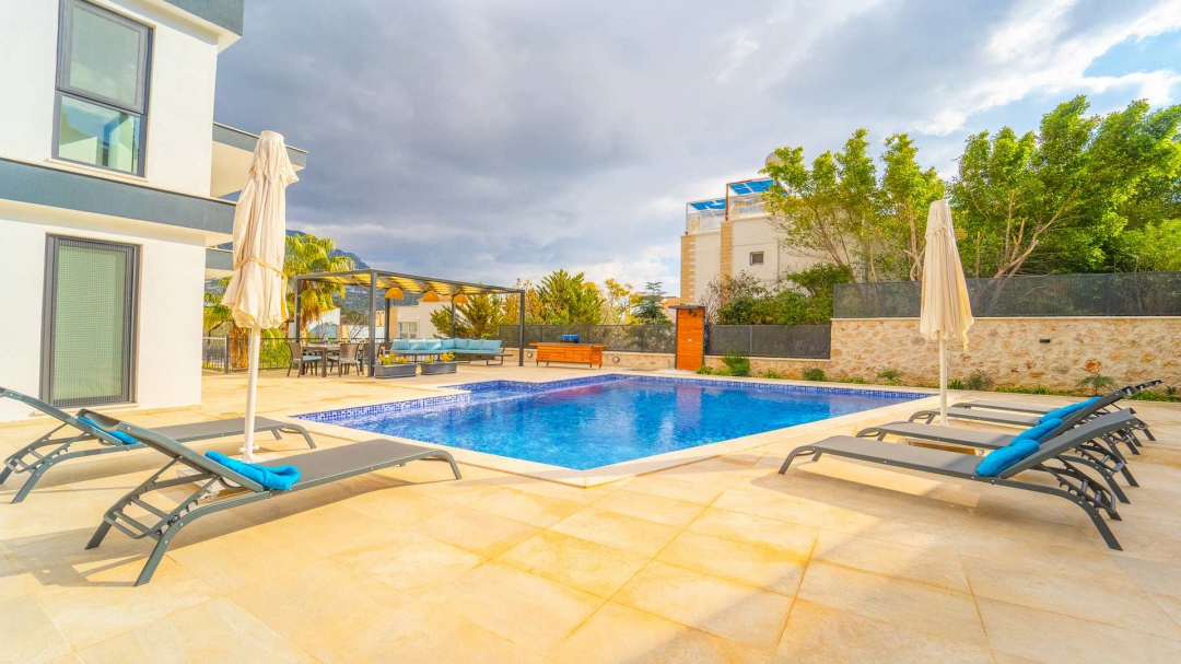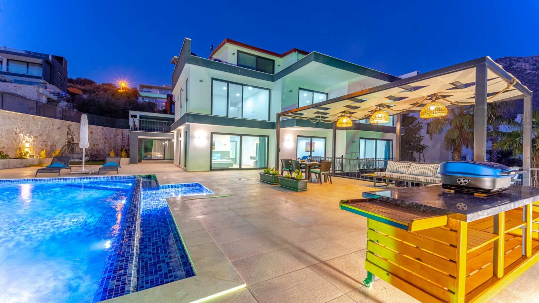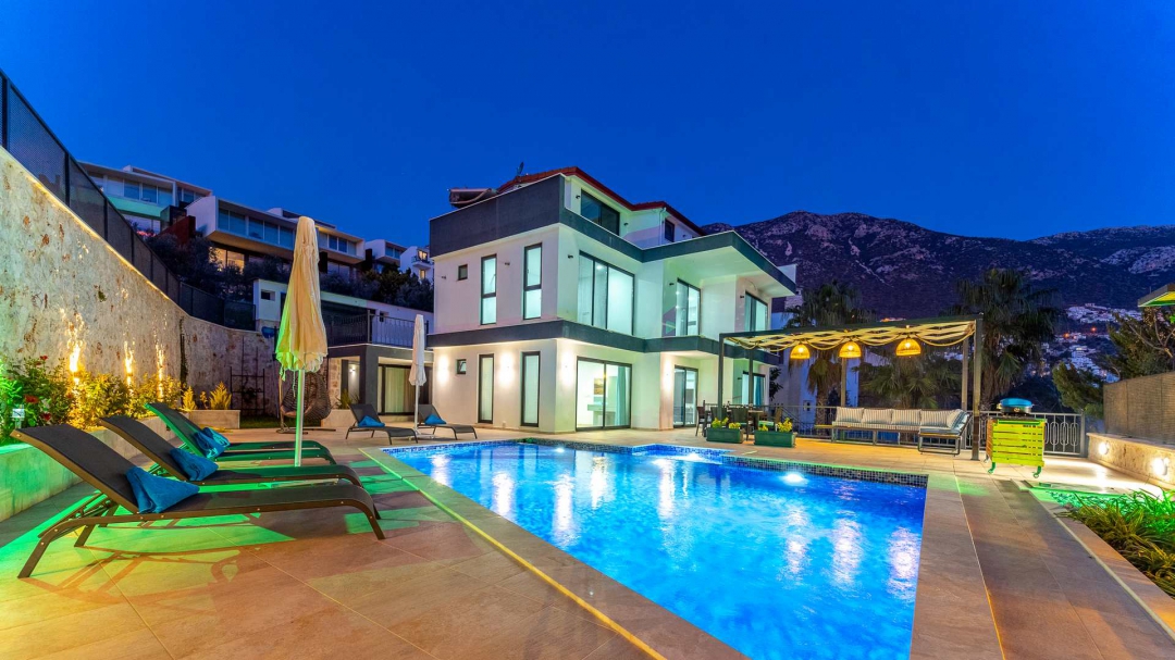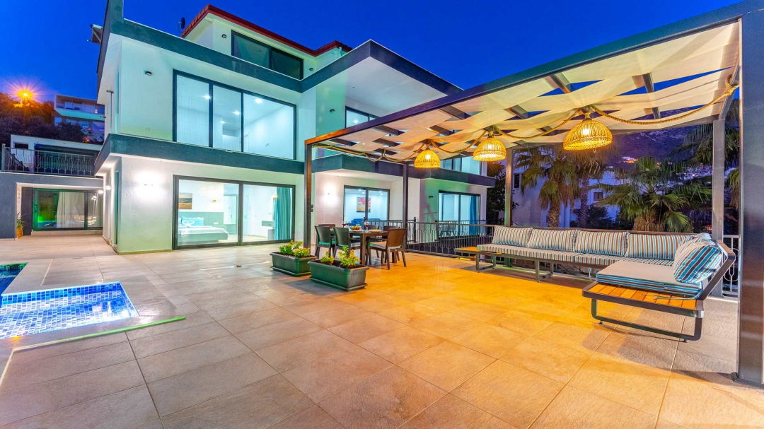 Kalkan, Ortaalan mevkiinde yer alan, üç yatak odalı altı kişi konaklama kapasitesine sahip kiralık villa, modern çizgilere sahip toplamda iki kattan oluşmaktadır. Havuz alanında; şezlong, güneş şemsiyesi, bahçe oturma grubu, damla salıncak, barbekü, yemek masası ve sandalye gibi donanımlara sahip olup keyifli dakikalar geçirebileceğiniz, geniş bir bahçe alanına bulunmaktadır. Kalkan merkeze yürüme mesafesindedir.