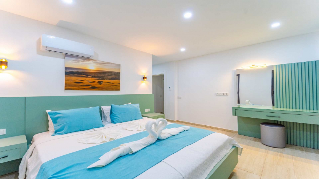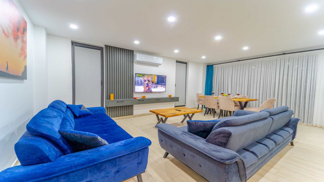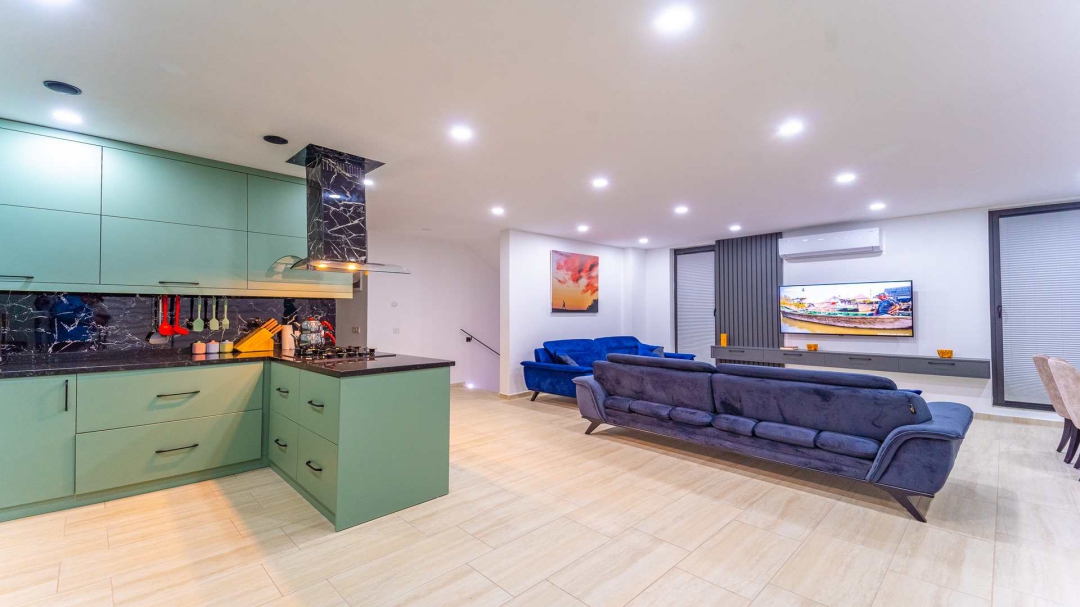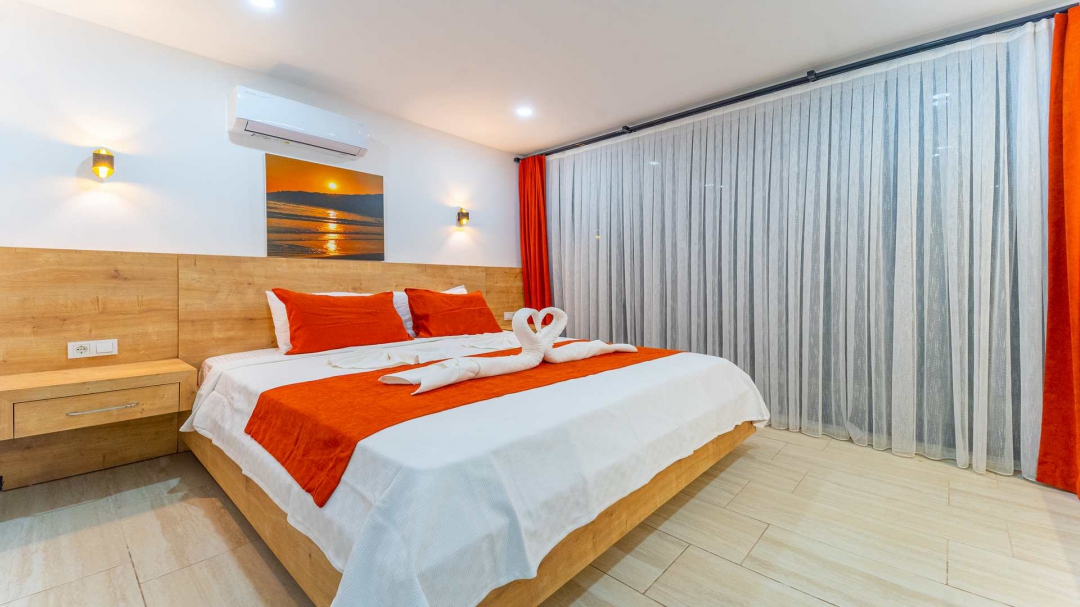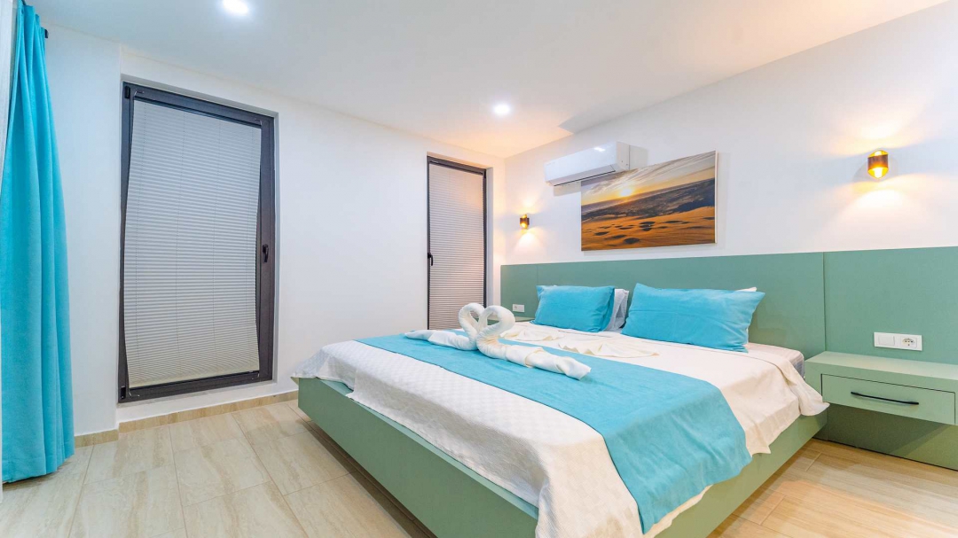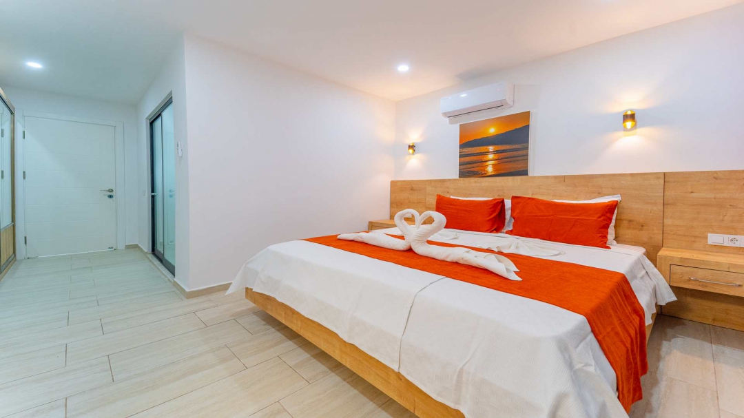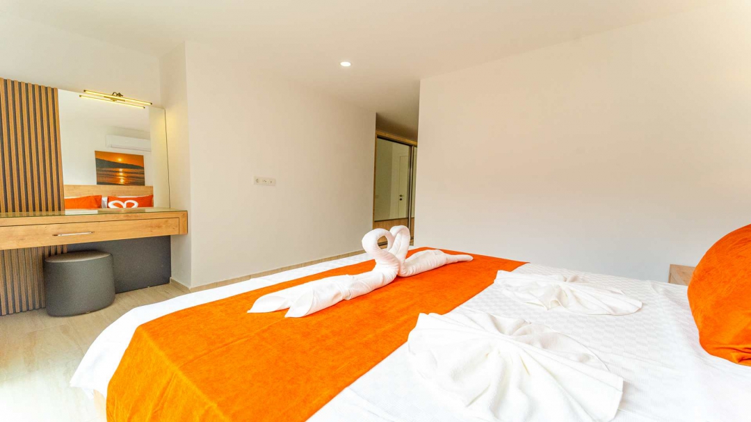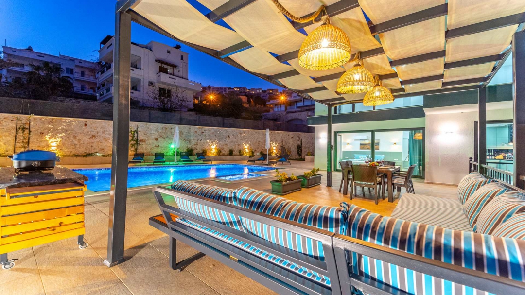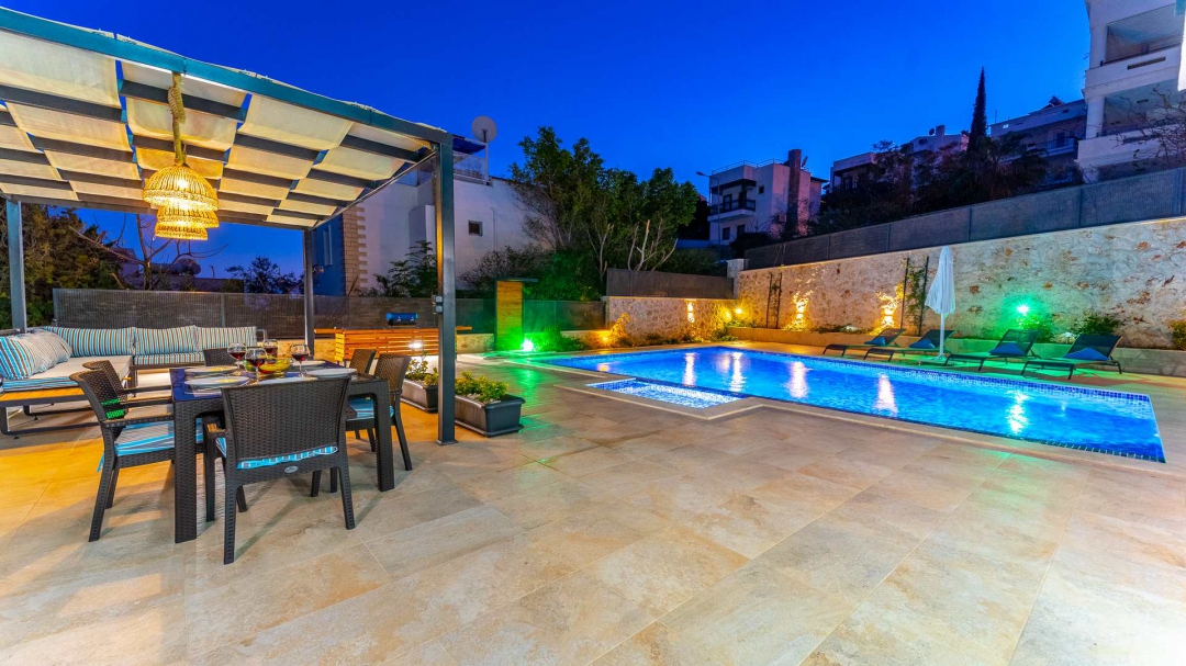 Kalkan, Ortaalan mevkiinde yer alan, üç yatak odalı altı kişi konaklama kapasitesine sahip kiralık villa, modern çizgilere sahip toplamda iki kattan oluşmaktadır. Havuz alanında; şezlong, güneş şemsiyesi, bahçe oturma grubu, damla salıncak, barbekü, yemek masası ve sandalye gibi donanımlara sahip olup keyifli dakikalar geçirebileceğiniz, geniş bir bahçe alanına bulunmaktadır. Kalkan merkeze yürüme mesafesindedir.