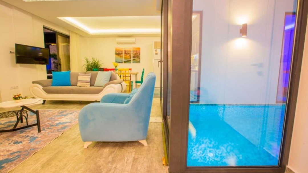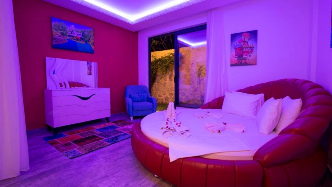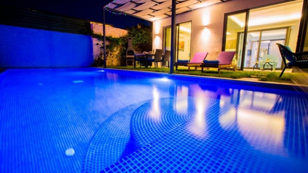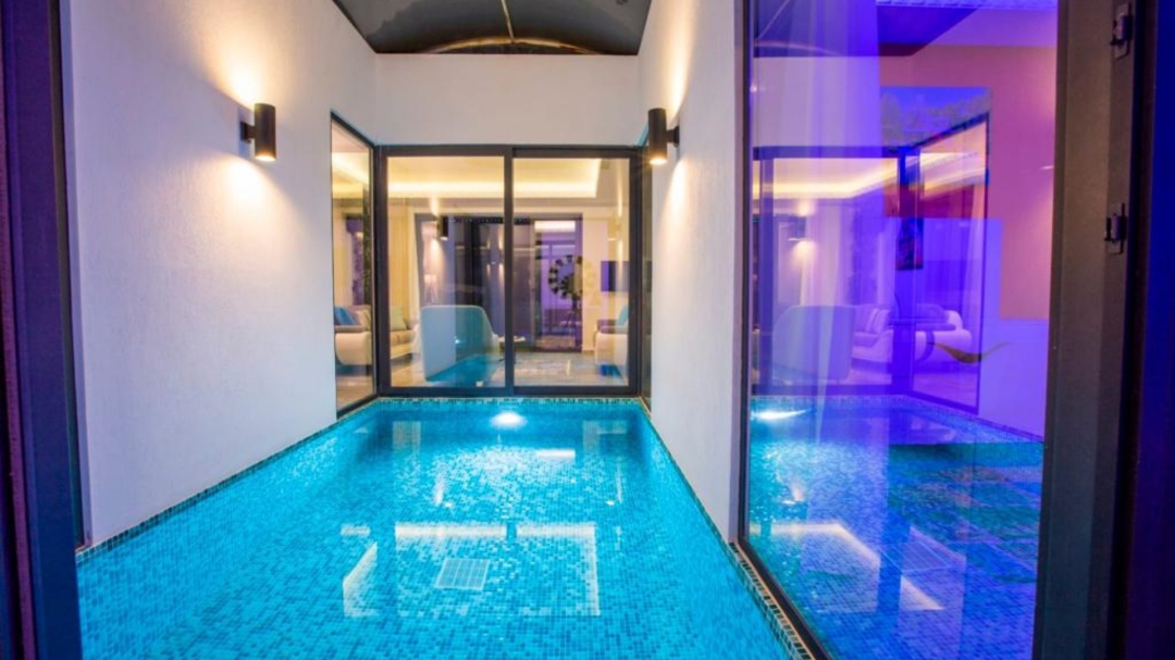 Villa, İslamlar bölgesinde yer alır. Havuz terası, dışarıdan izoledir. Dış havuzun dışında, iç bölümde, serin geçen mevsimlerde ısıtması aktif edilen bir iç havuz vardır.Tek yatak odalı yapının ana yatak odasında, yuvarlak, çift kişilik bir yatak vardır. İki kişi için yeterli donanıma sahip ve oldukça kullanışlıdır. Kapalı havuzuna, villanın salonundan ve yatak odasından erişim vardır.