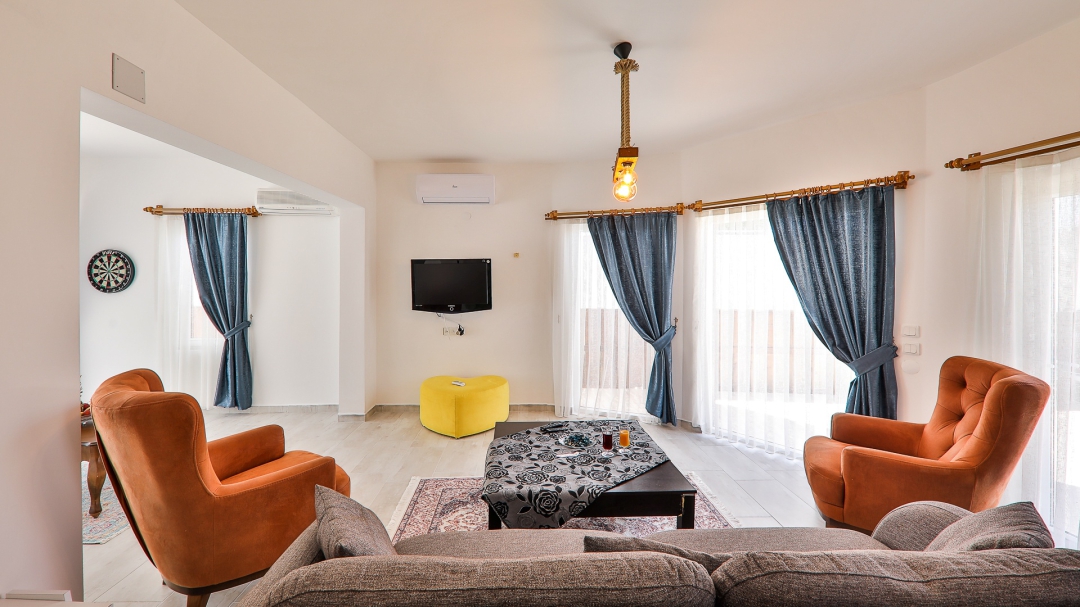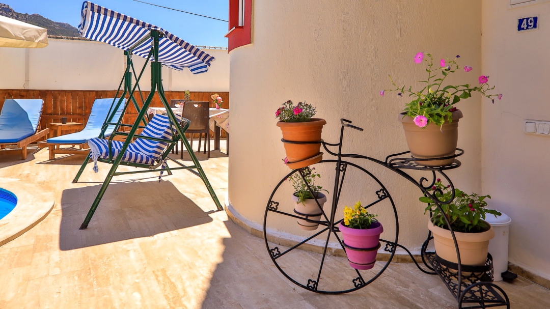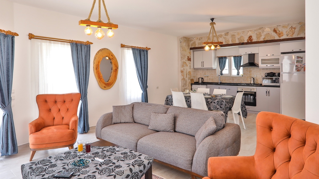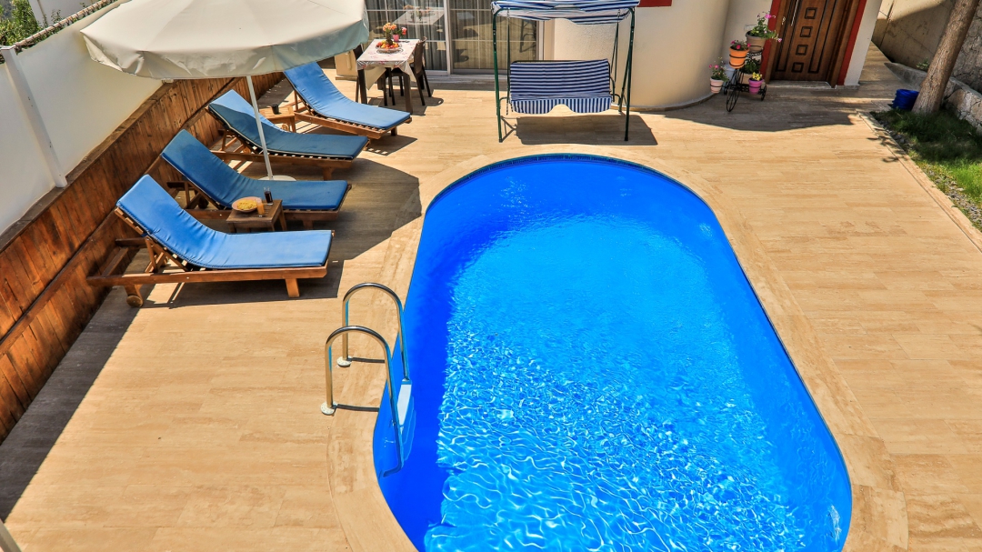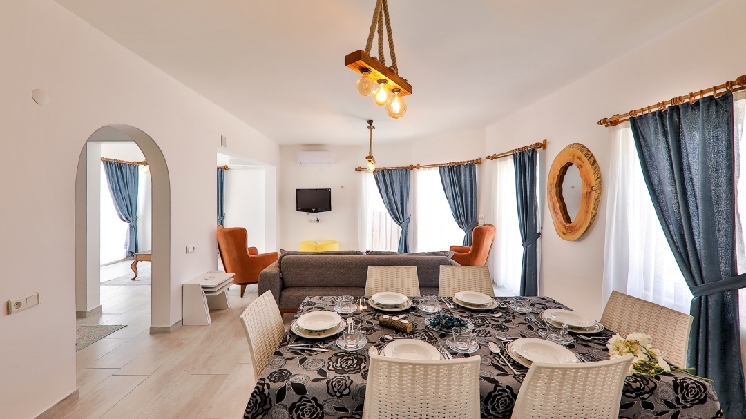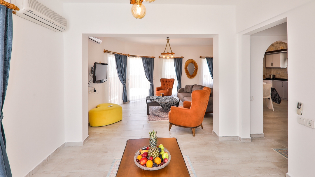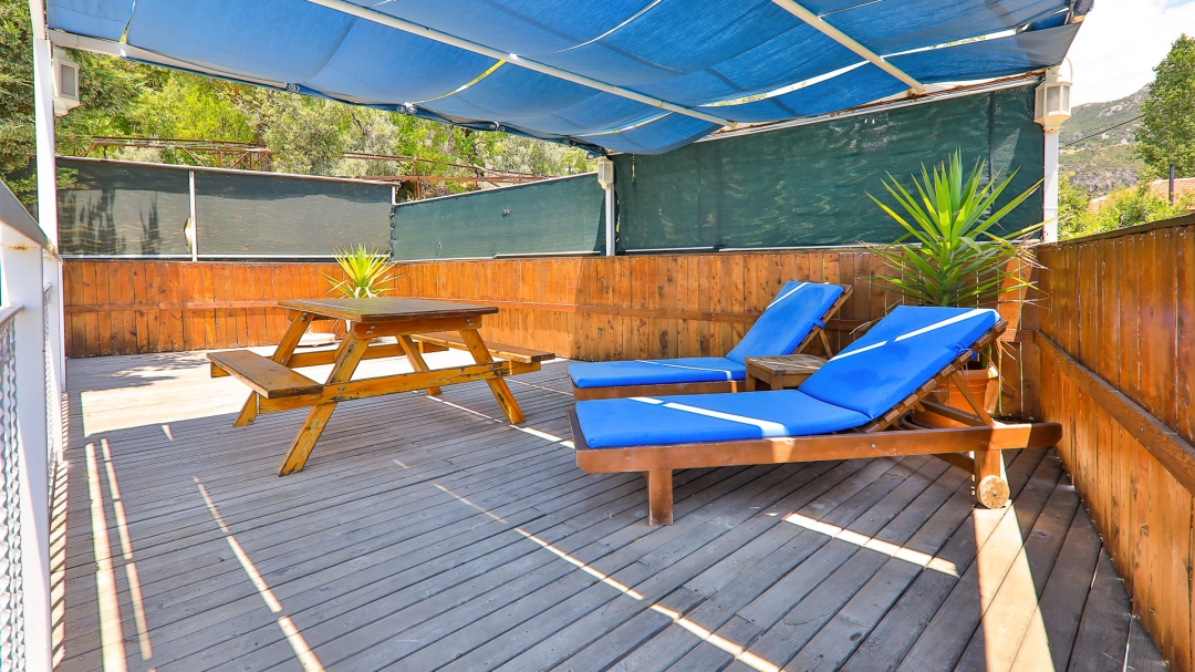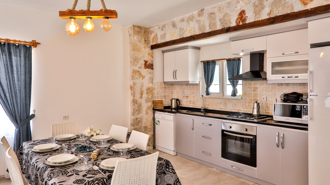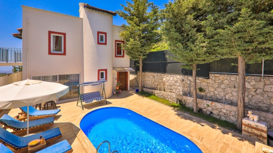 3 odalı villa, Kalkan yakınlarındaki İslamlar köyü bölgesinde yer alır. Havuz alanı korunaklıdır. Kalkan merkeze yaklaşık 11 km uzaklıktadır. Doğa içinde yer alan villanın ana yatak odasında çift kişilik  yatak, kalan 2 odanın birinde tek kişilik  yataklar, diğerinde ise ranza vardır.