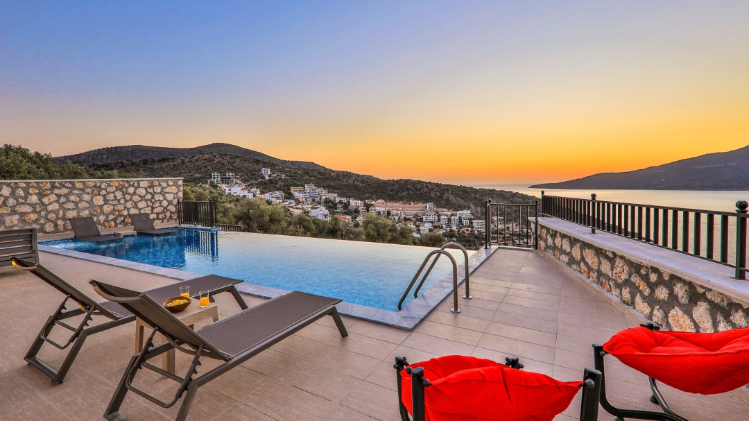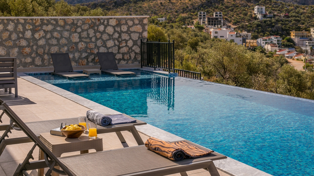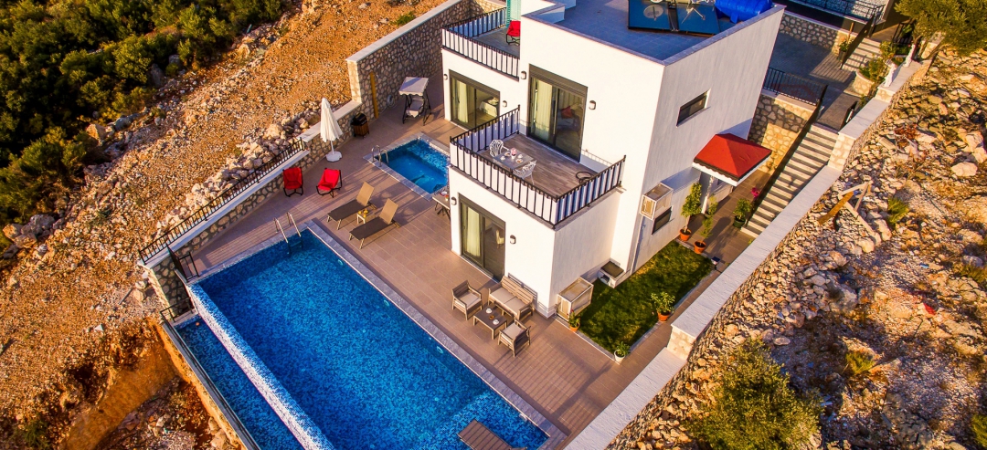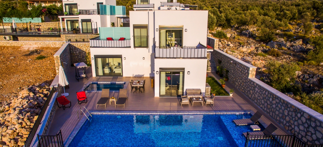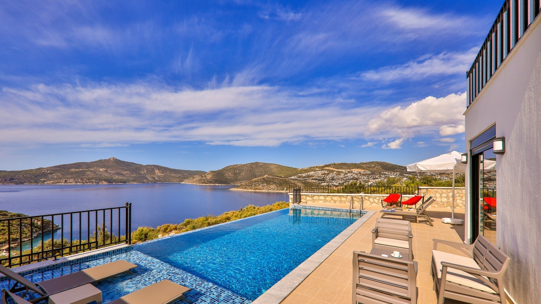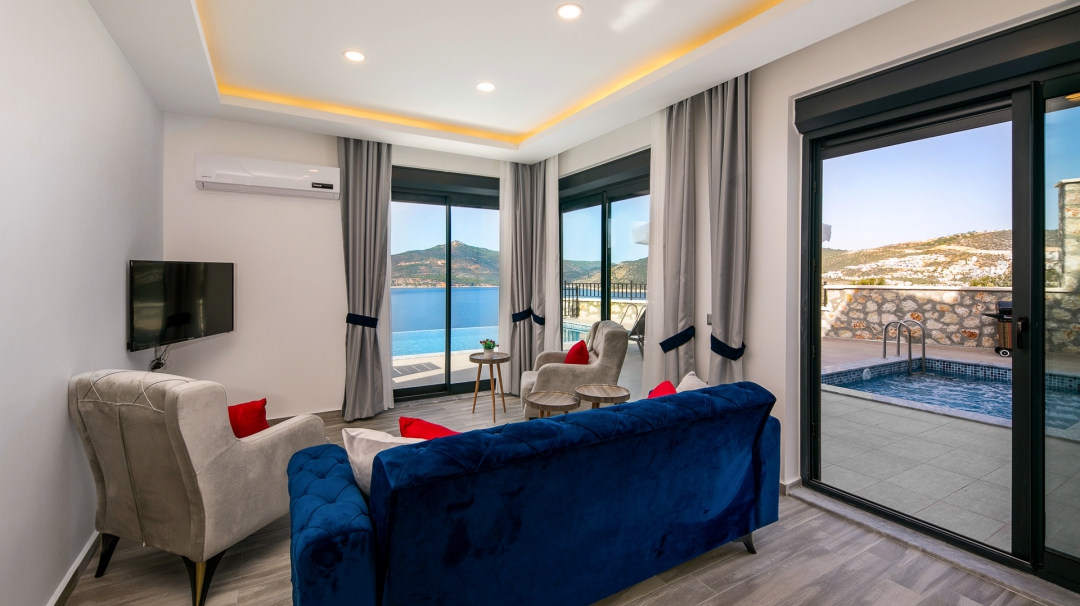 Villa, balayı çiftleri ve çekirdek aileler için uygundur. Deniz manzaralı ve ıstmalı havuzludur. Kalkan yakınında, Kışla bölgesinde yer alır. Ana yatak odası jakuzilidir. 4 kişiye kadar konaklama kapasitesine sahiptir. Isıtmalı olan küçük havuz 2.50 x 3.50 genişliğinde, 1.00 m derinliğindedir.