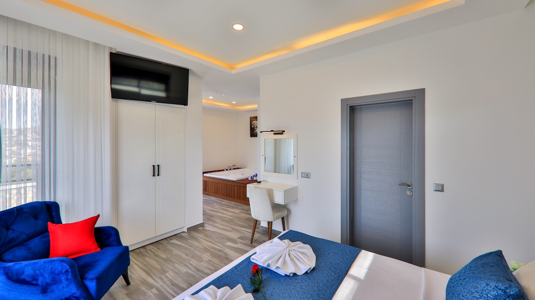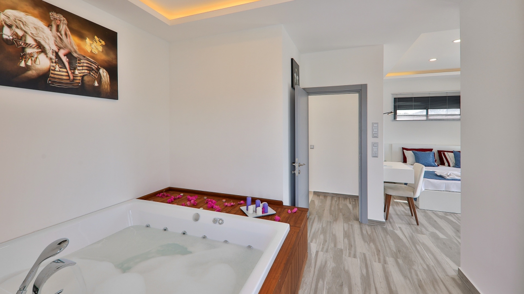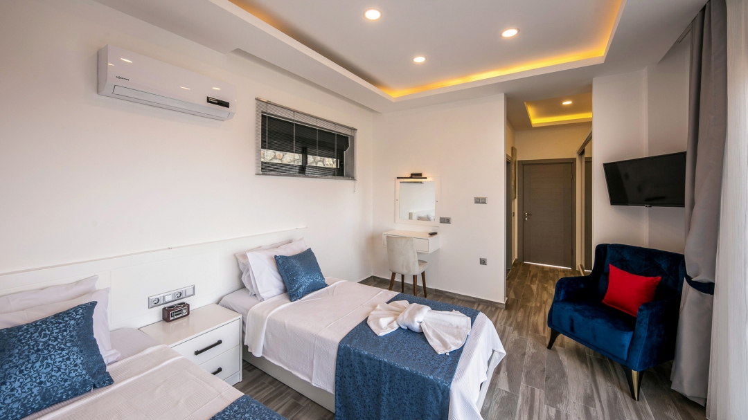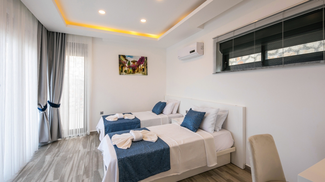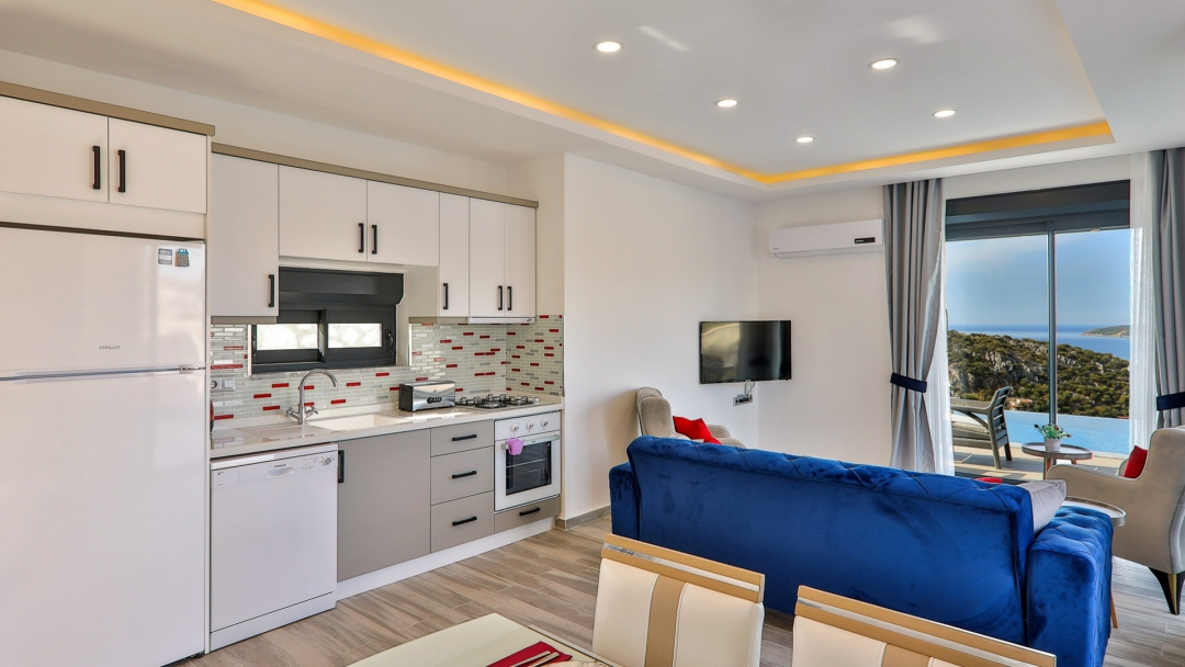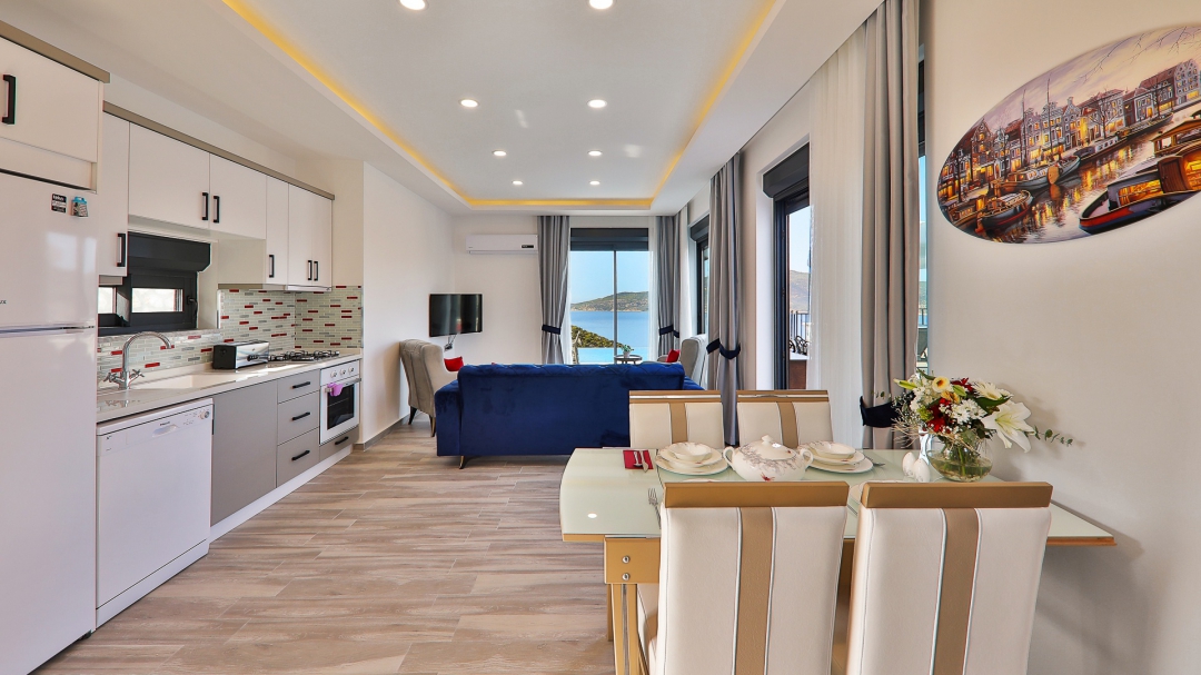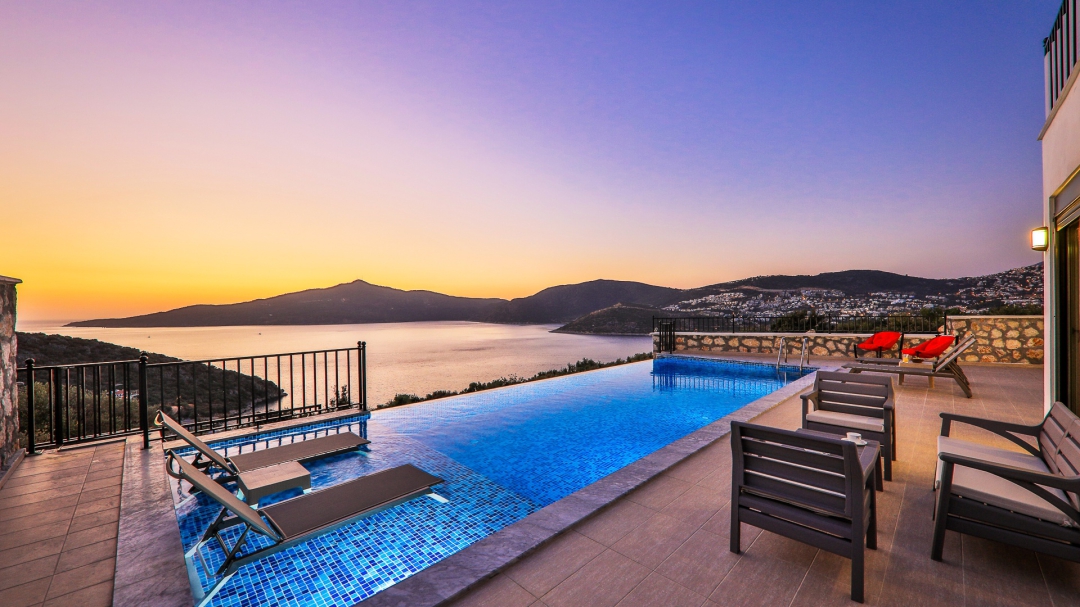 Villa, balayı çiftleri ve çekirdek aileler için uygundur. Deniz manzaralı ve ıstmalı havuzludur. Kalkan yakınında, Kışla bölgesinde yer alır. Ana yatak odası jakuzilidir. 4 kişiye kadar konaklama kapasitesine sahiptir. Isıtmalı olan küçük havuz 2.50 x 3.50 genişliğinde, 1.00 m derinliğindedir.
