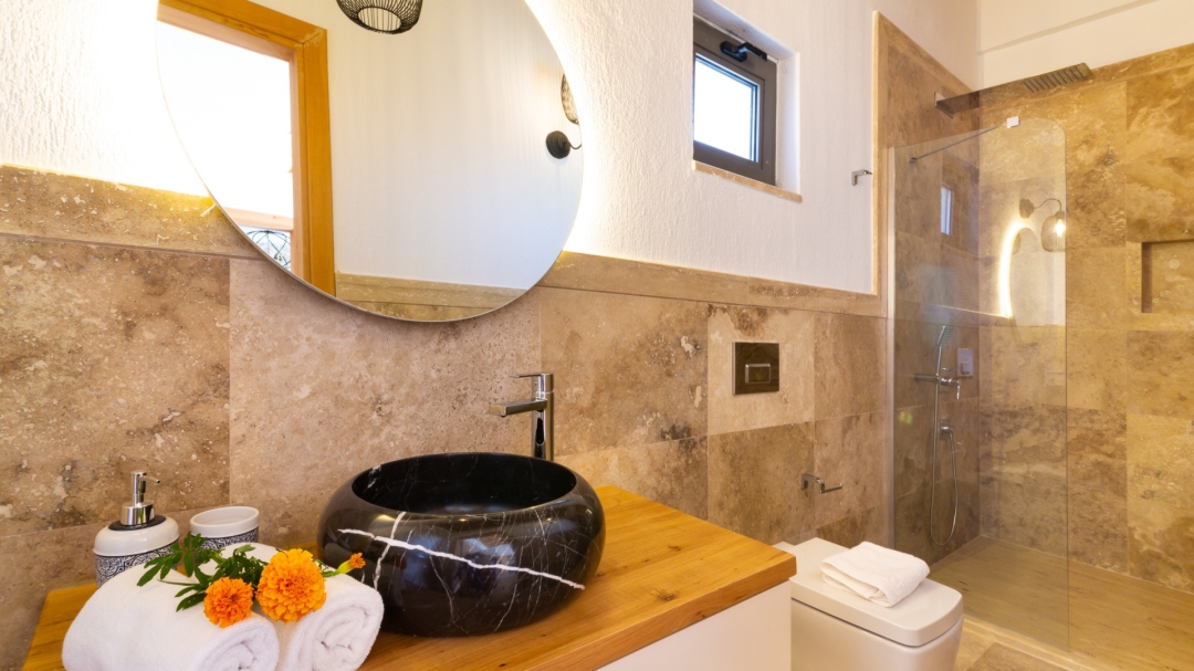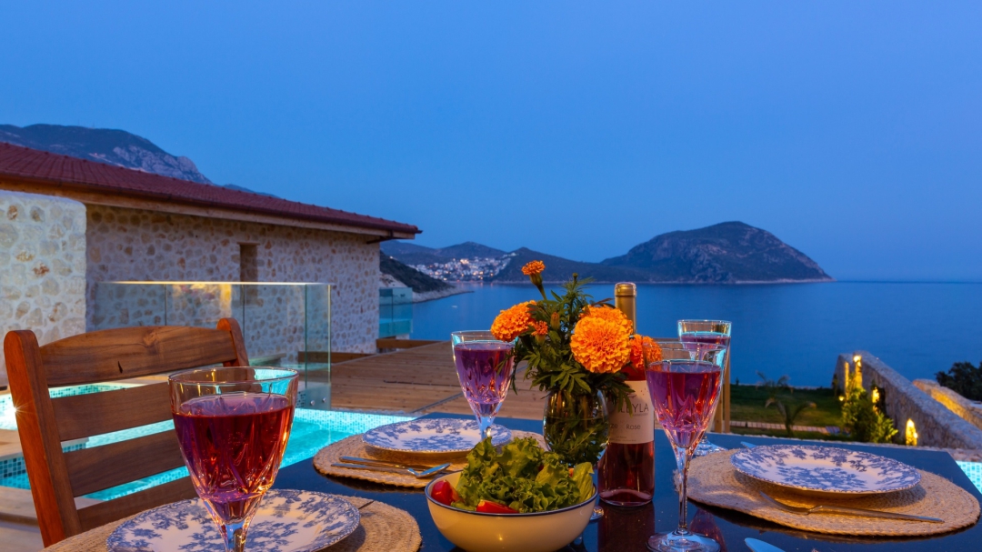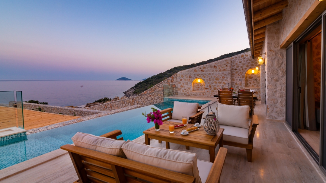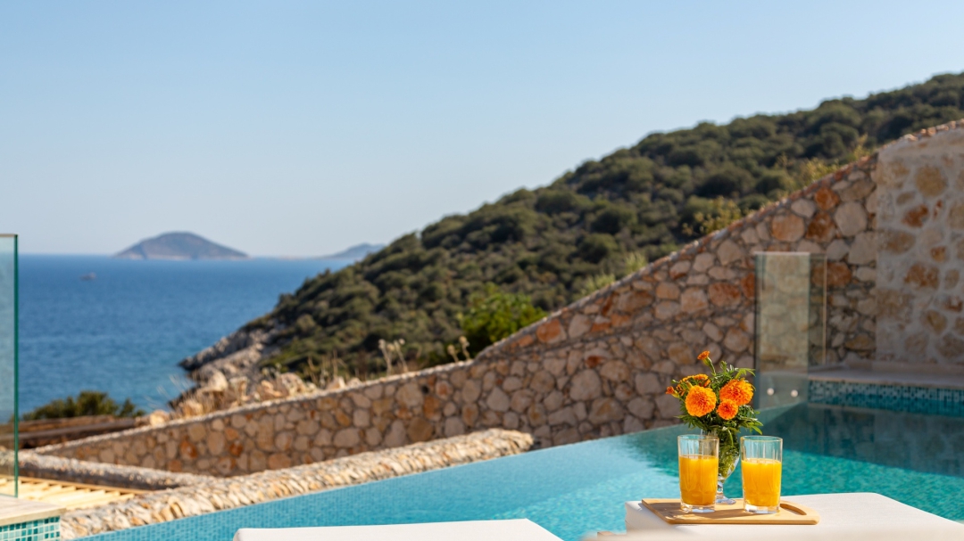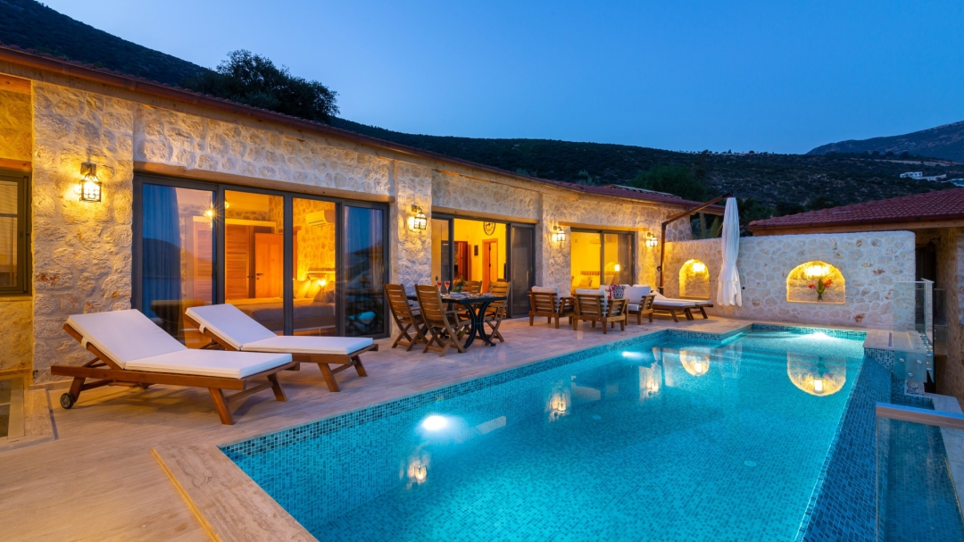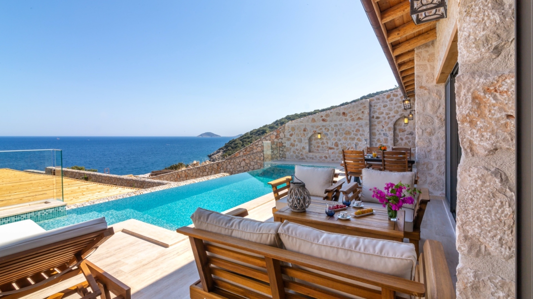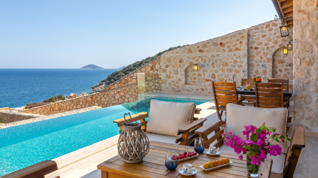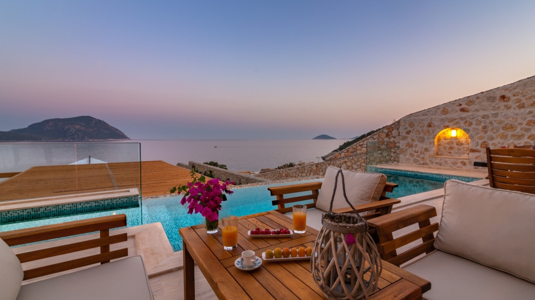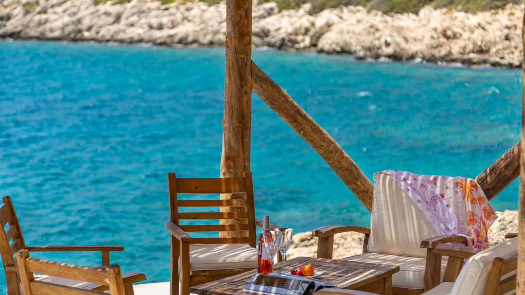 Özel plaj, deniz manzaralı 4 kişilik villa, Kalamar koyunda yer alan bir seçenek. Güneydoğuya bakacak şekilde konumlandırılmıştır. Denizin sesini  duyabileceğiniz villa oldukça sade ve zevkli döşenmiştir.